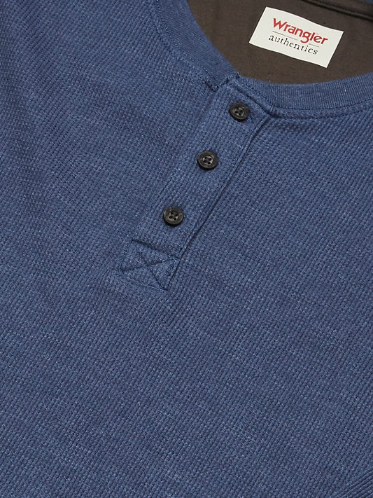 Wrangler Authentics Men's Long Sleeve Waffle Henley, Vintage Indigo, XX-Large