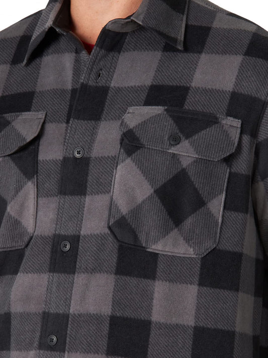 Wrangler Authentics Men's Long Sleeve Heavyweight Fleece Shirt, Gray Buffalo Plaid, Large